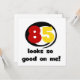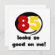 If you or someone you know is turning 85 years old, you'll love our 85 Looks So Good On Me birthday T-shirts, buttons, cards, stickers, mugs, magnets, and other 85th birthday apparel and gifts with a black, red, and yellow text design.