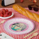 85 Your Photo Random Number Pattern Pink/White Paper Plate