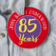 85th Birthday badge. Eighty five years old. Personalise with name and age.