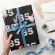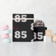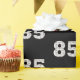 85th birthday party with bold black and white happy and number 85 text on black with party balloon bouquet.