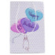 Pink, purple, and aqua heart balloon bouquet on pastel hearts on white background for 85th birthday.