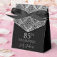 This elegant 85th Birthday Black silver Damask Thank You favour box with shimmering silver faux foil, the birthday girl's name in a trendy script font, and tied with an elegant black bow would be perfect for your event. It would be great for a candy station, on a thank you gift table, or at each place setting with a favour. Be sure you order enough for all your guests.