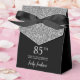 This fabulous modern 85th Birthday Black Silver Glitter Thank You favour box with sparkling hot pink glitter, the birthday girl's name in a trendy script font, and tied with an elegant black bow would be perfect for your event. It would be great for a candy station, on a thank you gift table, or at each place setting with a favour. Be sure you order enough for all your guests.