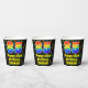 This cheerful and fun music-themed birthday paper cup design features a large number “85” with a rainbow spectrum gradient inspired pattern, along with the message “Happy 85th Birthday,”, and a personalised name. The background features a colourful music notes and symbols pattern. Vibrant, colourful paper cups like this might be fun to use at a birthday party/celebration being held to honour somebody’s eighty fifth birthday. [~Z0000541]
