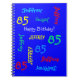 What a wonderful, personalised spiral notebook Guest Book for an 85th birthday party or any other occasion. On the cover, Name and Age repeats in different fun typography fonts and primary colours on a royal blue background. Easy to personalise - just CHANGE NAME, AGE, and OCCASION in ONE PLACE. Supports name up to 9 characters. A colourful and fun Birthday Party Guest Book - easy to change for ANY NAME, ANY AGE. All Rights Reserved © 2014 Alan & Marcia Socolik.