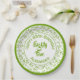 85th Birthday Random Number Pattern Green/White Paper Plate