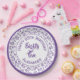 85th Birthday Random Number Pattern Purple/White Paper Plate