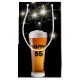 Party sparkler in a cold glass of beer with light string on black background for 85th birthday.