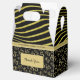 The bottom half features a black and gold random number pattern with the milestone number 85 repeated in various sizes and angles across an all-over print. The top half consists of wavy stripes. A white band encircles the top, and a plaque in the centre holds your text. Utilise the user-friendly templates to add your own words, name, initial, or monogram. This design makes an excellent party favour for your 85th birthday celebration or can be used for all occasions, whether business or personal, to commemorate the number eighty-five. Simply modify the text to align with the event.