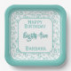 This unique numeric design features a teal and white random number pattern with the milestone number 85 displayed in various sizes and angles. A white rounded square serves as the centre for your text, surrounded by a teal and white frame.