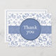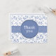 The modern numeric design is a blue and white random number pattern with a blue milestone number 85 repeated in varied sizes and angles over a white background. There is a circle in the center for your thank-you text.