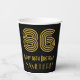 This 1920s-1930s style inspired and vintage look birthday themed paper cup design features a large art deco inspired appearance number “86”, plus the birthday greeting message “Happy 86th Birthday,” and an editable name. The background is coloured black. Birthday themed paper cups like this might be used at a birthday party celebrating somebody’s 86th birthday. [~Z0000546]