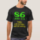 This fun and nerdy shirt design has the message "86 YEARS OLD!", the birthday greeting message "Happy 86th Birthday,", and an editable name. The upper age digits and text have a nerdy, pixelated, green, 8-bit graphics style appearance inspired by that of retro computer games and 8-bit video games. The lower greeting message has a geeky, yellow, classic digital computing inspired appearance. Shirts like this might be worn by the attendees at a birthday party being held to celebrate the 86th birthday of somebody who really likes vintage video gaming or historic computers. [~Z0000455]