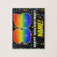 This fun and upbeat birthday-themed jigsaw puzzle design features a large number “86” having a multicolored rainbow spectrum inspired gradient pattern. It also features the message “HAPPY 86th BIRTHDAY,”, and a customisable recipient name. The background has a bold, multicolored star field pattern. A cheerful, personalised birthday puzzle like this might be a fun way to deliver birthday wishes to somebody who is celebrating their eighty-sixth birthday. [~Z0000607]