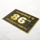 The front of this bold eighty-sixth birthday party/celebration foil invitation card features a personalized name, a large number “86th”, the message “BIRTHDAY PARTY!”, and a border, all in foil. There is a rustic, yet sophisticated, faux wood grain appearance inspired pattern for the background of the front. The back features personalized details about the event, such as the date, time, place/venue, and any other important information. Customizable invitations like these might be used to invite attendees to a birthday gathering being held in celebration of somebody’s 86th birthday. [~Z0000598]