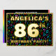 The front of this vibrant and upbeat eighty-sixth birthday party foil invitation card design features a personalised name, a large number “86th”, the message “BIRTHDAY PARTY!”, and a border. The background of the front features a fun, colourful musical notes and symbols pattern. The back features personalised details about the event, such as the date, time, venue, and any other important information. Editable invitations like these might be a fun way to invite attendees/guests to a birthday party/gathering being held to honour somebody’s 86th birthday. These might be more meaningful for a music-themed birthday party. [~Z0000601]