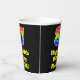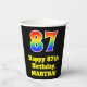 This colourful and fun birthday themed paper cup design features a large number “87” having a rainbow spectrum gradient inspired pattern. It also features the message “Happy 87th Birthday,”, and a personalised name. The background is coloured black. Colourful, vibrant paper cups like this might be fun to have at a birthday party/celebration being held to celebrate somebody’s eighty seventh birthday. [~Z0000537]