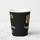 This luxurious, sophisticated, and stylish birthday-themed paper cup design features a large ordinal number “87th” having a faux/imitation gold-like appearance, along with the birthday greeting message “Happy 87th Birthday,” and a customisable name in a script-style font. The background is coloured black. Birthday themed paper cups like this might be a fun way to celebrate somebody’s eighty seventh birthday. [~Z0000538]