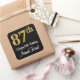 This sophisticated, stylish, and luxurious birthday sticker design features a large ordinal number “87th” having a faux/imitation gold-like look, in addition to the birthday greeting message “Happy 87th Birthday,” and a personalised name in a script-style font. The background is coloured black. Elegant birthday themed stickers like this could be used when wrapping a gift or present being given to somebody who is celebrating their eighty seventh birthday, or perhaps may be given out to the attendees at a birthday party. [~Z0000517]