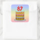 87th Birthday: Fun Cake and Candles + Custom Name Square Sticker