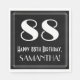 This 1920s-1930s style inspired and vintage look birthday themed paper napkin design features a large art deco look inspired number "88", the message "Happy 88th Birthday,", a customisable name, and a border pattern consisting of thin lines. Fun, customised paper napkins like this might be used at a party being held to celebrate somebody’s eighty eighth birthday. [~Z0000461]
