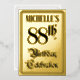 The front of this elaborate and luxurious eighty-eighth birthday celebration foil announcement card design features the message “88th Birthday Celebration” in opulent script-style text. It also features a personalised name. The back features personalised details about the event, such as the date, time, place/venue, and any other important information. Ornate, elegant, editable invitations like these might be used to invite guests to a birthday party being held in celebration of somebody’s 88th birthday. [~Z0000596]