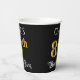 This ornate and elegant birthday themed paper cup design features a custom name and the message “88th Birthday Party”. The large number “88th” has a faux/imitation gold-inspired colouring pattern, and the words “Birthday Party” are in fancy script-style text. The background is coloured black by default (although it can be customised). Fancy, opulent paper cups like this might be used at a birthday celebration being held to honour somebody’s eighty eighth birthday. [~Z0000567]