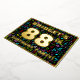 The front of this upbeat and vibrant eighty-eighth birthday party foil invitation card design features a personalised name, a large number “88th”, the message “BIRTHDAY PARTY!”, and a border. The background of the front features an eye-catching, colourful pattern of musical symbols. The back features personalised details about the event, such as the date, time, place, and any other important information. Customisable invitations like these might be a fun way to invite attendees to a birthday gathering being held to honour somebody’s 88th birthday. These might be extra special if that person is a composer, a singer, a musician, a songwriter, or appreciates music. [~Z0000601]