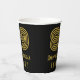 This vintage style and 1920s/1930s style inspired birthday-themed paper cup design features a large art deco inspired appearance number “89”, plus the birthday greeting message “Happy 89th Birthday,” and a customisable name. It also has a black-coloured background. Paper cups like this might be used at a party for somebody who is celebrating their 89th birthday. [~Z0000546]