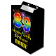 This fun, colourful, and exciting birthday themed giftbag design features a large number "89" with a rainbow spectrum gradient inspired pattern, along with the message "Happy 89th Birthday,", and a custom recipient name. It also has a colourful background pattern inspired by bursting celebratory fireworks. A gift-bag like this might be used when giving a gift or present in honour of somebody’s 89th birthday. [~Z0000509]