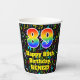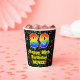 This cheerful and colourful music themed birthday paper cup design features a large number “89” having a rainbow spectrum gradient inspired pattern. It also features the message “Happy 89th Birthday,”, and a custom name. The background features a multicolored pattern having music notes and symbols of various sizes and colours. Vibrant, colourful paper cups like this might be fun to use at a birthday party/celebration being held to celebrate somebody’s 89th birthday. [~Z0000541]