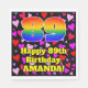 This happy and cheerful birthday themed paper napkin design features a large number “89” with a rainbow spectrum gradient inspired pattern, along with the message “Happy 89th Birthday,”, and an editable name. The background features a pattern of heart shapes with colours like pink, purple, and red. Happy, friendly paper napkins like this might be fun to have at a birthday party/celebration being held to celebrate somebody’s 89th birthday. [~Z0000550]
