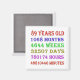 89th birthday counting down the years, days, months, hours, and minutes. A birthday present to give pause for thought! Leap years have been taken into account!