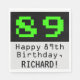 This geeky and fun birthday themed paper napkin design features a large green retro video gaming style number "89" on a black coloured background. It also features the birthday greeting message "Happy 89th Birthday,", and an editable name. Fun paper napkins like this might be used at a party being held to celebrate the 89th birthday of a computer system administrator, a scientist, or somebody who really likes vintage video games. [~Z0000404]