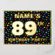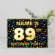 The front of this exciting eighty-ninth birthday party foil invitation card design features a custom name, a large number “89th”, the message “BIRTHDAY PARTY!”, and a border. The background of the front has a vibrant, multicolored star shapes pattern. The back features personalised details about the event, such as the date, time, venue, and any other useful information. Personalised invitations like these might be a fun way to invite guests to a birthday party being held in celebration of somebody’s 89th birthday. [~Z0000600]