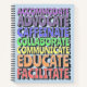 Spiral bound notebook for teacher, rainbow-colored words on a light blue background