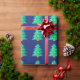 8 bit Green Christmas tree with blue background Wrapping Paper