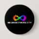 Celebrate neurodiversity and your love of retro games with this simply-styled pin. Features a pixelated, rainbow infinity symbol with white text “neurodiversity” on a black background.