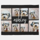 8 Photo Collage Add Your Name Calligraphy Black Fleece Blanket