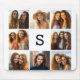 8 Photo Collage Custom Monogram Black and White Mouse Mat