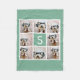 8 Photo Collage Single Monogram - Mint Green Fleece Blanket
