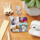 Personalised double sided 8 photo template metal keychain featuring 8 changeable photos and a rounded white frame. A great unique gift for a loved one in the family.