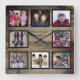 8 Photo Family Collage on Rustic Wood Square Wall Clock
