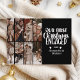 Capture the magic of your engagement with this modern and cosy holiday card. Featuring a bold white script on classic black, paired with your favourite winter photo, this design celebrates your first Christmas as an engaged couple in timeless style. Personalise with your names and the year for a heartfelt seasonal keepsake.