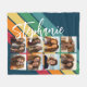 8 Photo Retro stripe pattern rainbow monogram Fleece Blanket