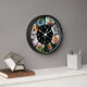 Black wall clock with personalised rounded photos. Great for your kitchen, living room or to give as a family gift.