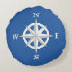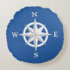 8-Point Compass Rose, White and Cobalt Blue Round Cushion
