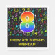This fun, vibrant, and colourful birthday themed paper napkin design features a large number "8" having a rainbow spectrum gradient inspired pattern. It also features the message "Happy 8th Birthday,", and a personalised name. Part of the background has a pattern of various music notes and symbols having a variety of colours and sizes. Birthday themed paper napkins like this might be fun to use at a celebration being held to honour somebody who is celebrating their eighth birthday. [~Z0000421]