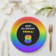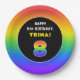 8th Birthday: Colourful Rainbow # 8, Custom Name Paper Plate