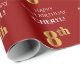 8th Birthday: Elegant, Red, Faux Gold Look Wrapping Paper